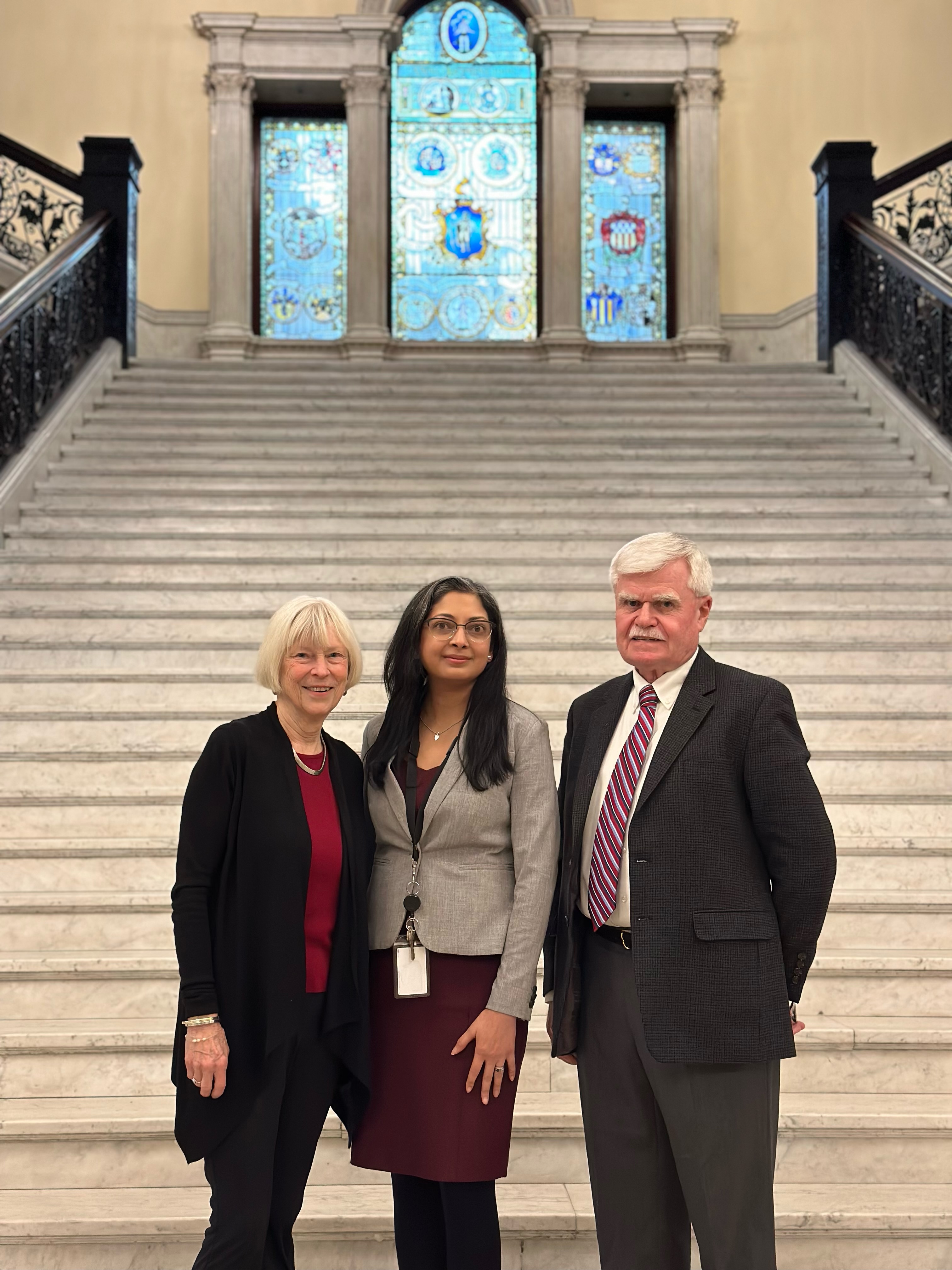 MAJCC Co-Chairs Rebecca Pries and Pooja Khialani and MAJCC lobbyist Ed Brennan advocated and educated our state legislators about MAJCC’s advocacy goals for FY2025.